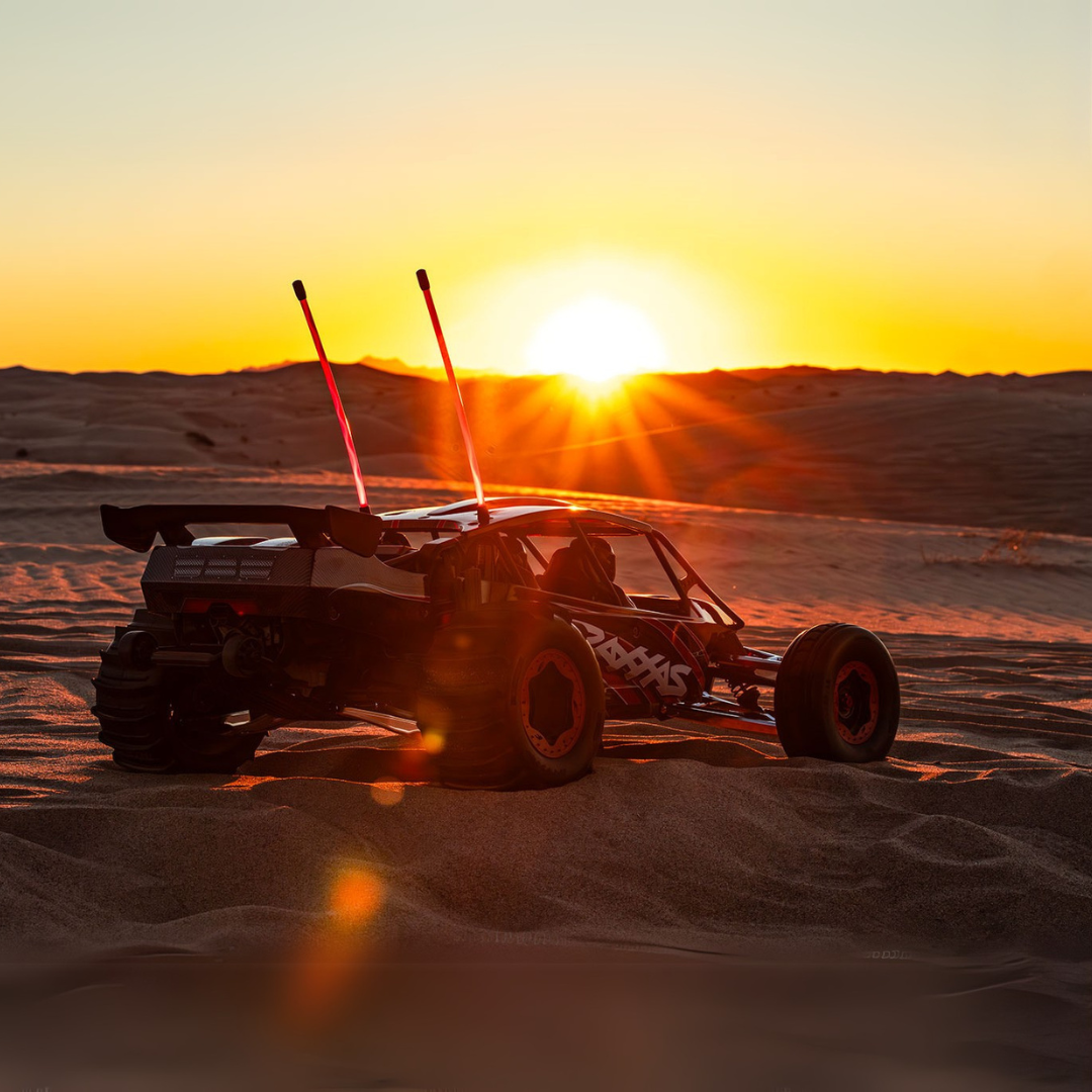- For the first time in an RC sand car, Traxxas integrates functional front disc brakes alongside traditional rear motor braking. This system provides superior stopping power and allows for aggressive control when navigating high-speed dunes. Coupled with Traxxas Stability Management® (TSM), this sand car offers pro-level driving stability, keeping it firmly planted even on loose terrain.
