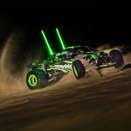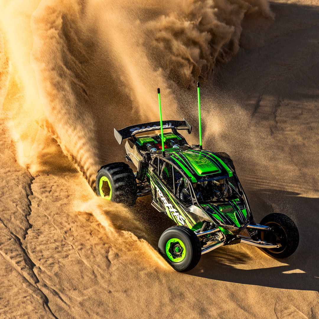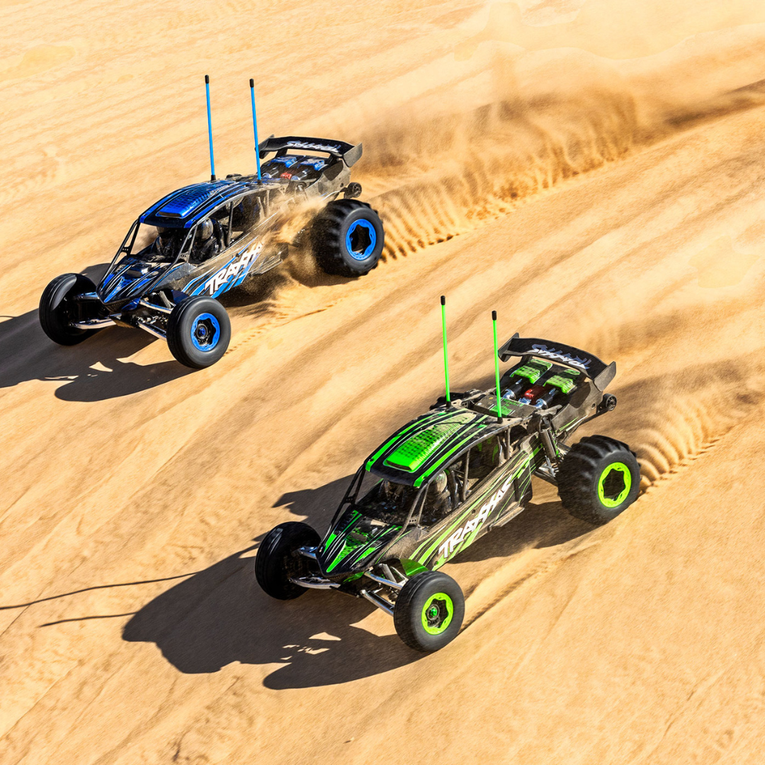 - For the first time in an RC sand car, Traxxas integrates functional front disc brakes alongside traditional rear motor braking. This system provides superior stopping power and allows for aggressive control when navigating high-speed dunes. Coupled with Traxxas Stability Management® (TSM), this sand car offers pro-level driving stability, keeping it firmly planted even on loose terrain.