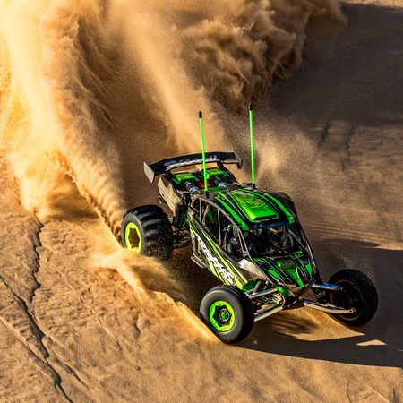 The Traxxas Funco® Pro Scale® 2WD Brushless RTR Sand Car is an adrenaline-pumping, high-speed machine built for the dunes. Inspired by the real 1000+ HP Funco Motorsports sand car, this RC replica delivers scale realism with cutting-edge performance. Featuring a VXL-8s Brushless Power System, this sand car reaches speeds of 55+ mph, making it the fastest and most powerful addition to the X-Series™ lineup. Equipped with high-speed belted sand paddle tyres and a long-travel suspension, it offers unmatched handling and control over rough terrain.