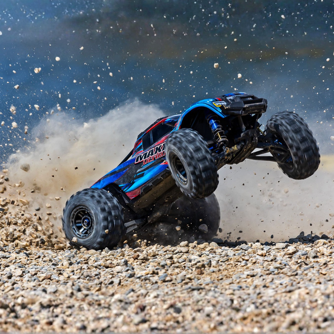 The Maxx Ultimate is a high-performance 1/10 scale monster truck engineered for extreme power, durability and control. Equipped with a 2400 Kv brushless motor and waterproof electronics, it delivers over 60 mph top speeds with optional gearing. Featuring a rugged modular chassis, upgraded aluminium components, and advanced stability management, this monster truck is built to conquer all terrains with ease.
