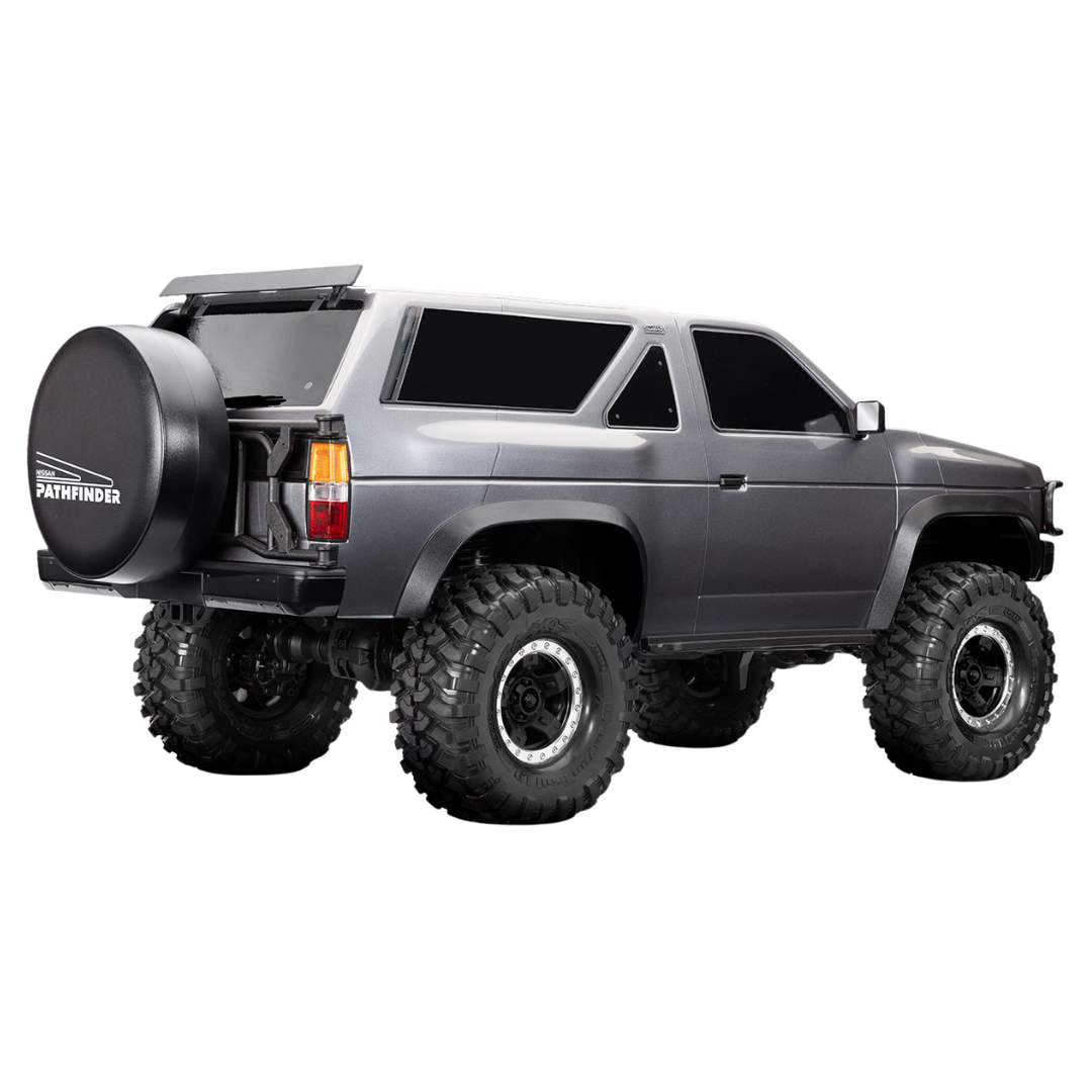 The Traxxas TRX-4 Nissan Pathfinder brings legendary Pathfinder styling together with proven TRX-4 performance. Featuring portal axles, remote locking differentials, two-speed transmission, and a rigid steel frame, this crawler delivers exceptional capability on the trail. Its officially licensed clipless Pathfinder body includes scale details and smooth lines, combining durability with realism.
