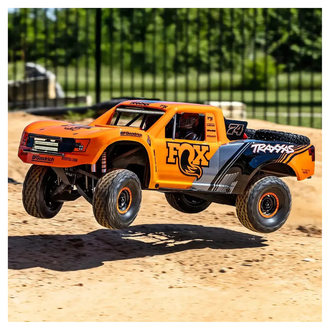The Traxxas UDR Unlimited Desert Racer is a 1:7 scale brushless RTR RC Baja truck built for extreme realism and performance. Featuring a VXL-6s power system, long-travel suspension, and licensed Fox Edition styling, it delivers authentic desert racing capability straight out of the box.