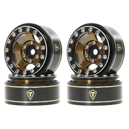 Enhance your RC crawler's performance with TREAL 1.0" Beadlock Wheels, engineered for 1/18 TRX4M and 1/24-scale models including SCX24, AX24, and FCX24. CNC-machined from aluminium with black-coated brass rings, these rims provide added weight for improved traction and stability across tough terrain.