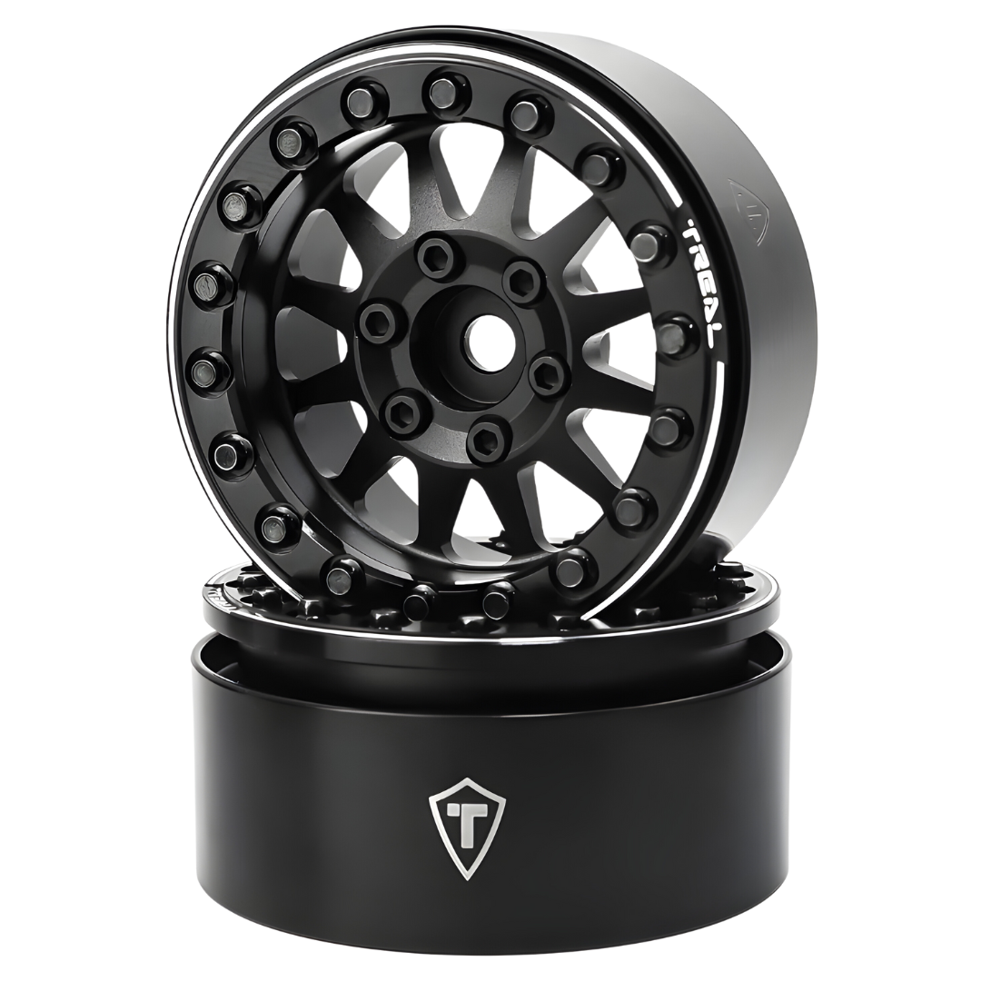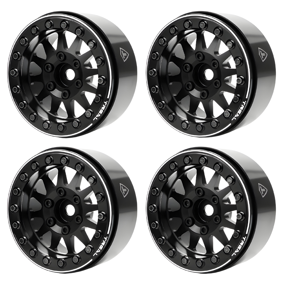 Treal 1.9 Beadlock Wheels (4) Alloy Type D RC Rock Crawler Wheels Black