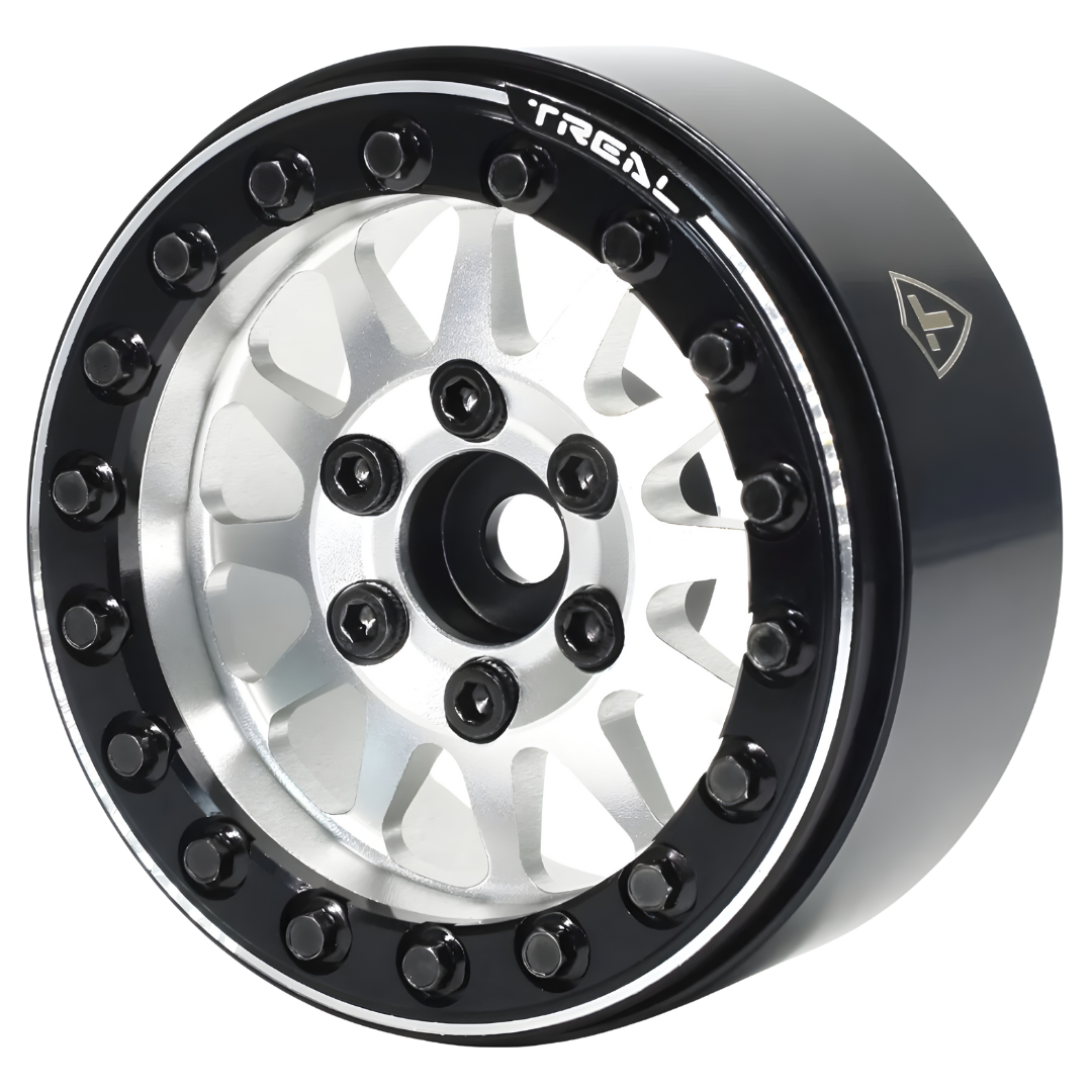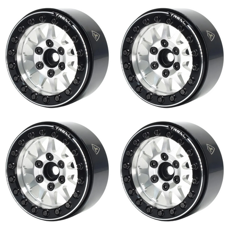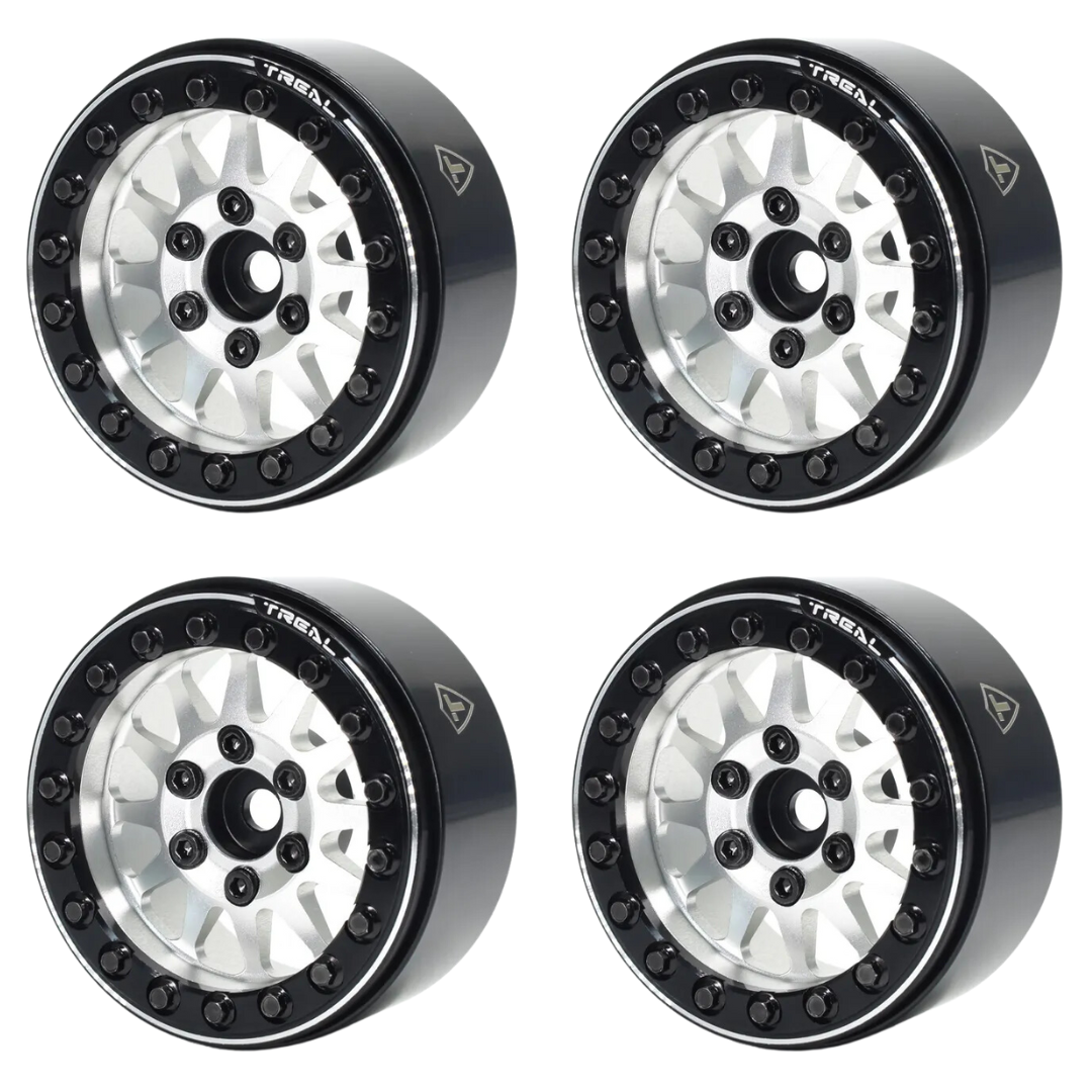 Treal 1.9" Beadlock Wheels (4) Alloy Type D RC Rock Crawler Wheels Silver/Black
