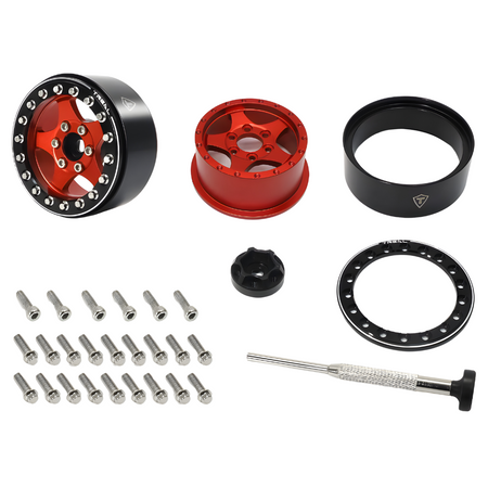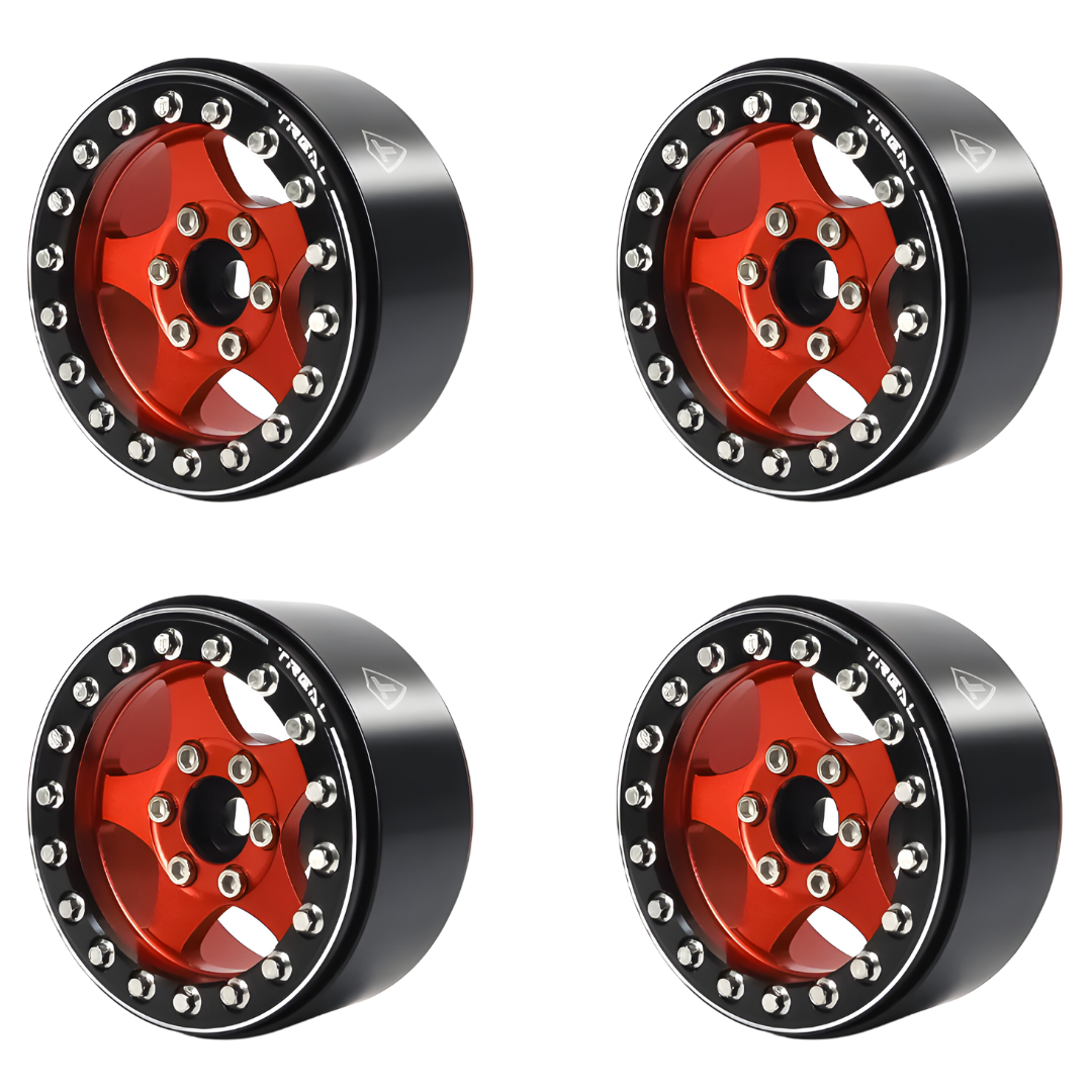 Treal 1.9 Beadlock Wheels (4) Alloy Type E RC Rock Crawler Wheels Red/Black