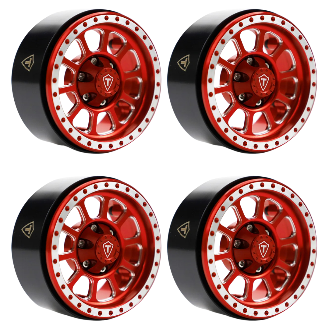Treal 1.9" Beadlock Wheels (4) Heavy Type C RC Rock Crawler Wheels Red