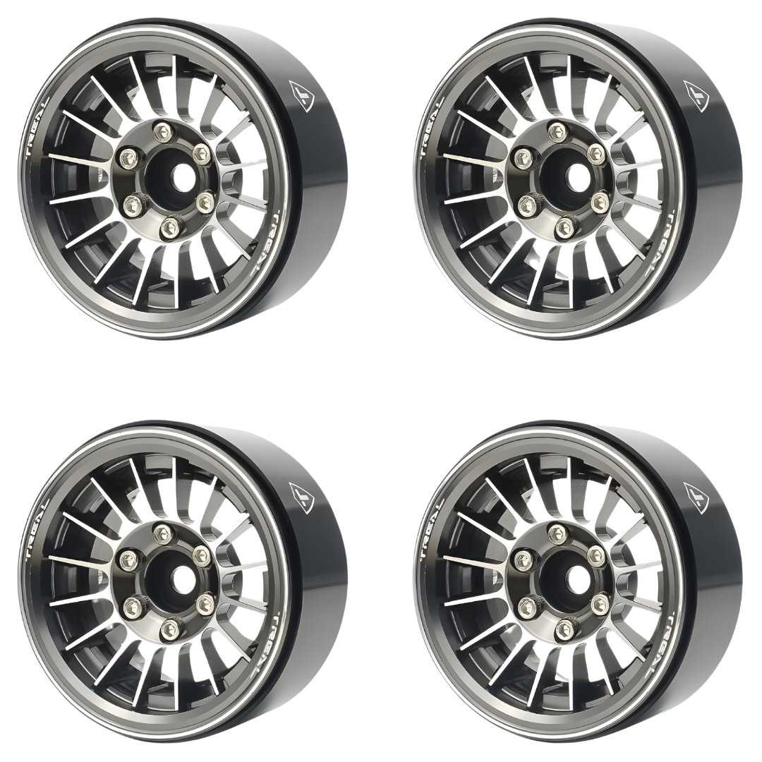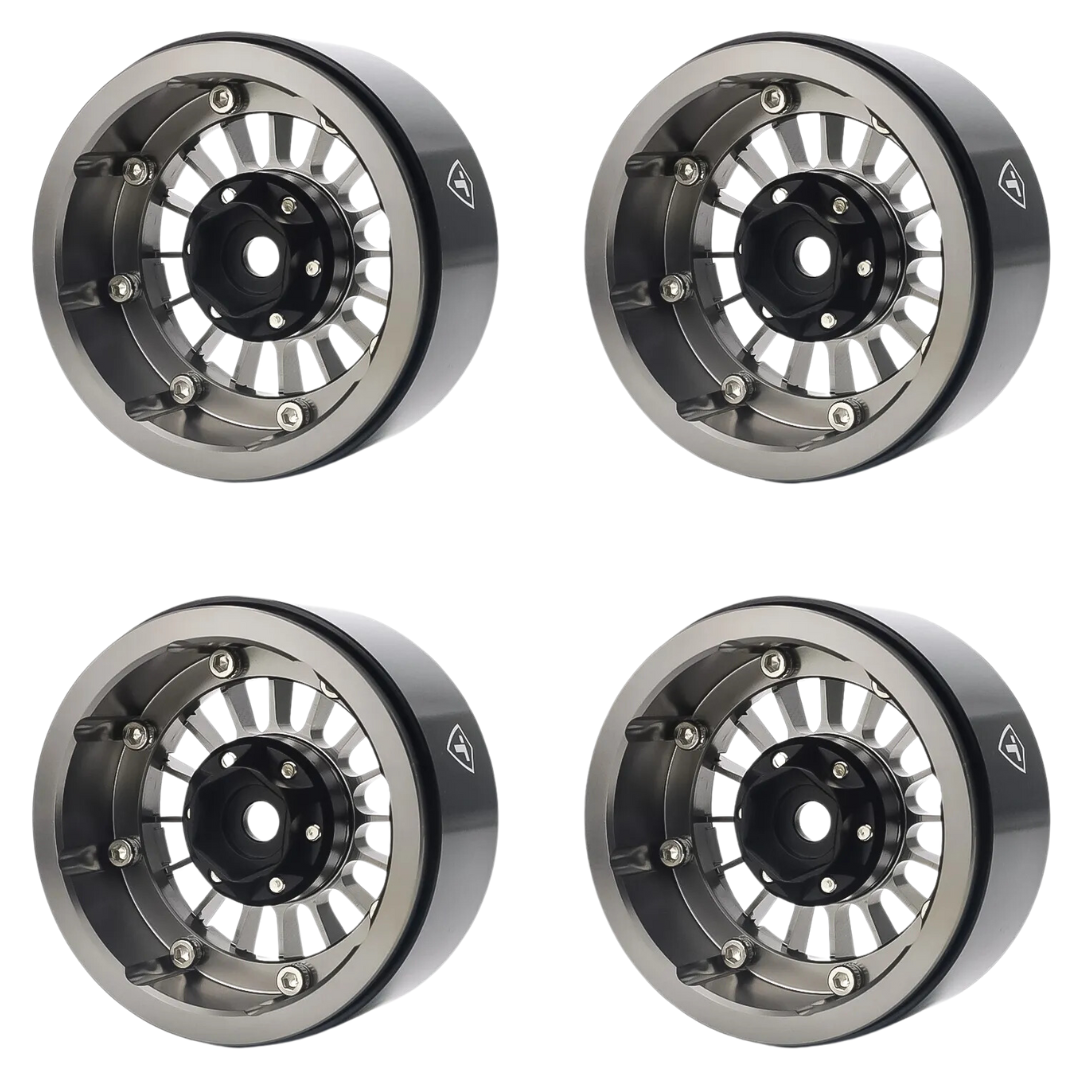 Treal 1.9" Beadlock Wheels (4) Heavy Type J RC Rock Crawler Wheels Grey