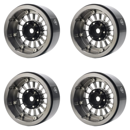 Treal 1.9" Beadlock Wheels (4) Heavy Type J RC Rock Crawler Wheels Grey.