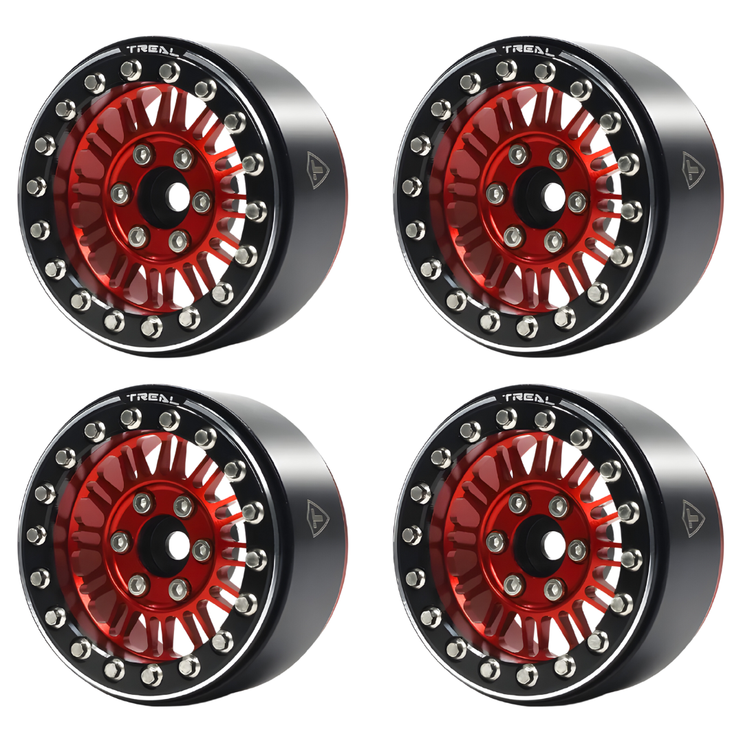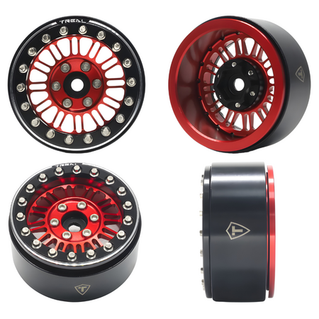 Treal 1.9 Beadlock Wheels (4) Heavy Type K RC Rock Crawler Wheels Red/Black