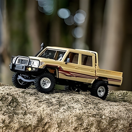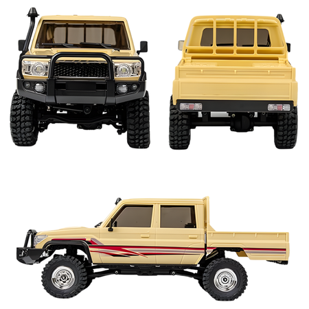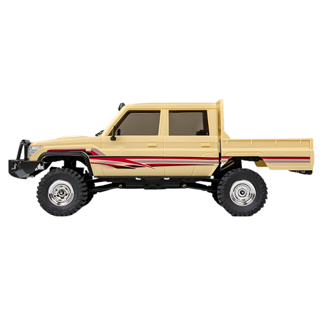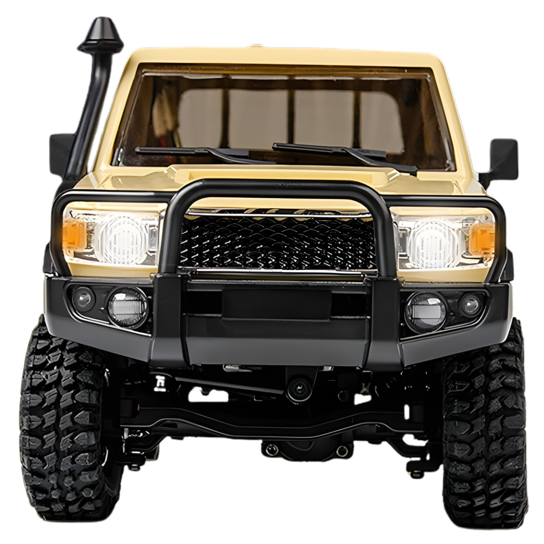 The UDI RC UCX1801PRO Toyota LC in yellow is a 1/18 scale ready-to-run off-road crawler that combines scale realism with advanced functionality. Featuring a two-speed transmission, Tank U-Turn function, and remote-controlled LED lighting, it’s built for fun, performance, and high playability on varied terrain.