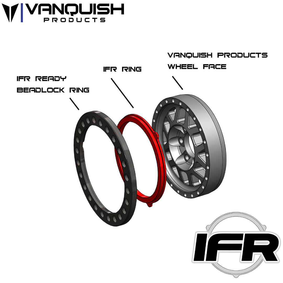 Vanquish Products 1.9 IFR Delta Inner Ring. The IFR system has been developed to add color combinations and styles. A unique locking mechanism makes installation of the IFR ring simple. The IFR ring must be installed under an IFR Ready Beadlock Ring. Not compatible with non-IFR beadlock rings, look for the "IRF Ready" logo on the Beadlock Ring image or in the IFR rings section.