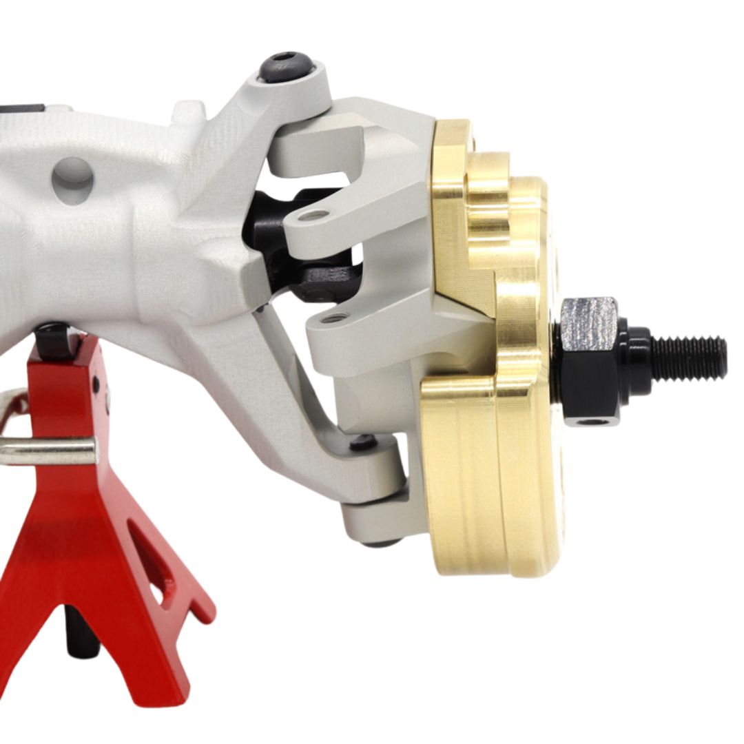 These Vanquish Products Brass F10 Portal Knuckle Weights are a low offset version allowing the use of a 225 SLW hub and will clear 0.8 or 1.0 wide Vanquish Products Wheels.