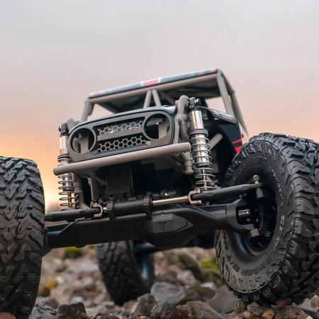 The H10 Optic RTR Trail Buggy was developed from the ground up as a purpose built ultimate trail truck. Styled after buggies that are designed to conquer difficult trails, the H10 caged chassis design allows for full view of the Yokohama Geolandar M/T’s. The H10 axles feature an increased width over the F10 axles and incorporate a scale hydraulic ram style steering. The servo is hidden behind the axle and tucks into the chassis during the suspension cycle, preserving the scale look while providing optimal performance. A 13.25” wheelbase and increased track width offer a new level of stability and capability with this 1.9 trail truck.