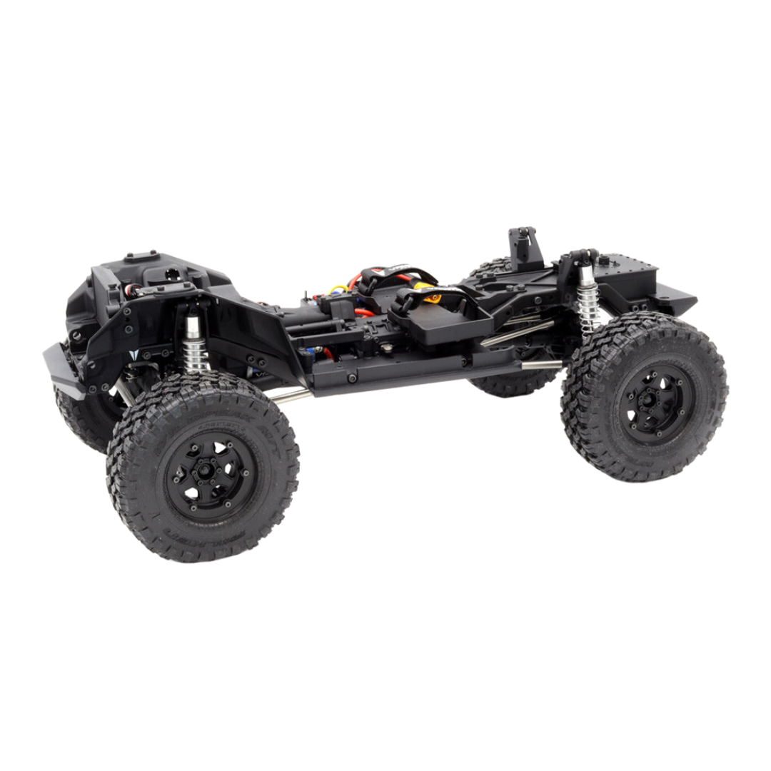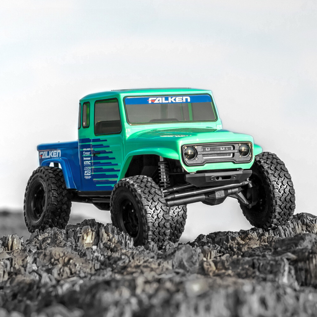 The VS4-10 Phoenix Portal RTR Falken Edition is the first VS4-10 Portal Equipped RTR from Vanquish Products. Features the VFD Twin transmission,F10 Portal Axles, Phoenix body with bedsides, and a detailed interior. Included is a full function digital 4 Channel VT-1 Transmitter with multiple model memory and end point adjustment, making the VS4-10 Phoenix Portal RTR ready to be equipped for fully functioning Dig and Selectable OD. Or run it out of the box with 6% OD powered by a 35T VM-1 Motor and VE-1 3S capable ESC. The large diameter Stainless Steel links bring high end Vanquish Products kit quality to the RTR market. The drivetrain is equipped with machined ring and pinion gears, machined portal gears, chromoly universal axle shafts, and chromoly 6-bolt spools for the ultimate in durability. Full ball bearings, metal transmission gears and 32P spur / pinion provide smooth and reliable performance when tackling the toughest terrain.