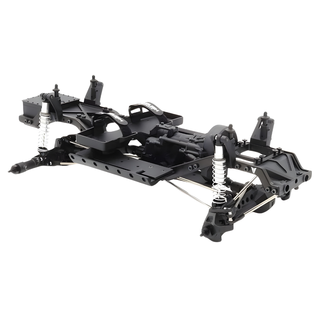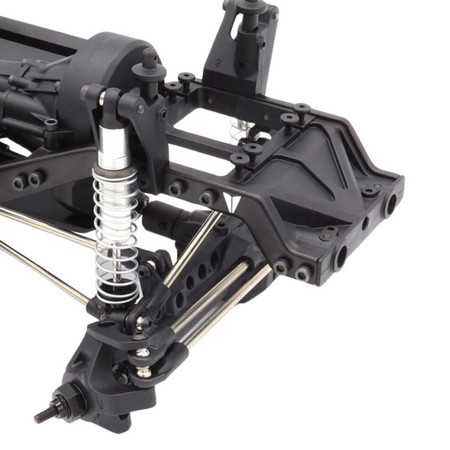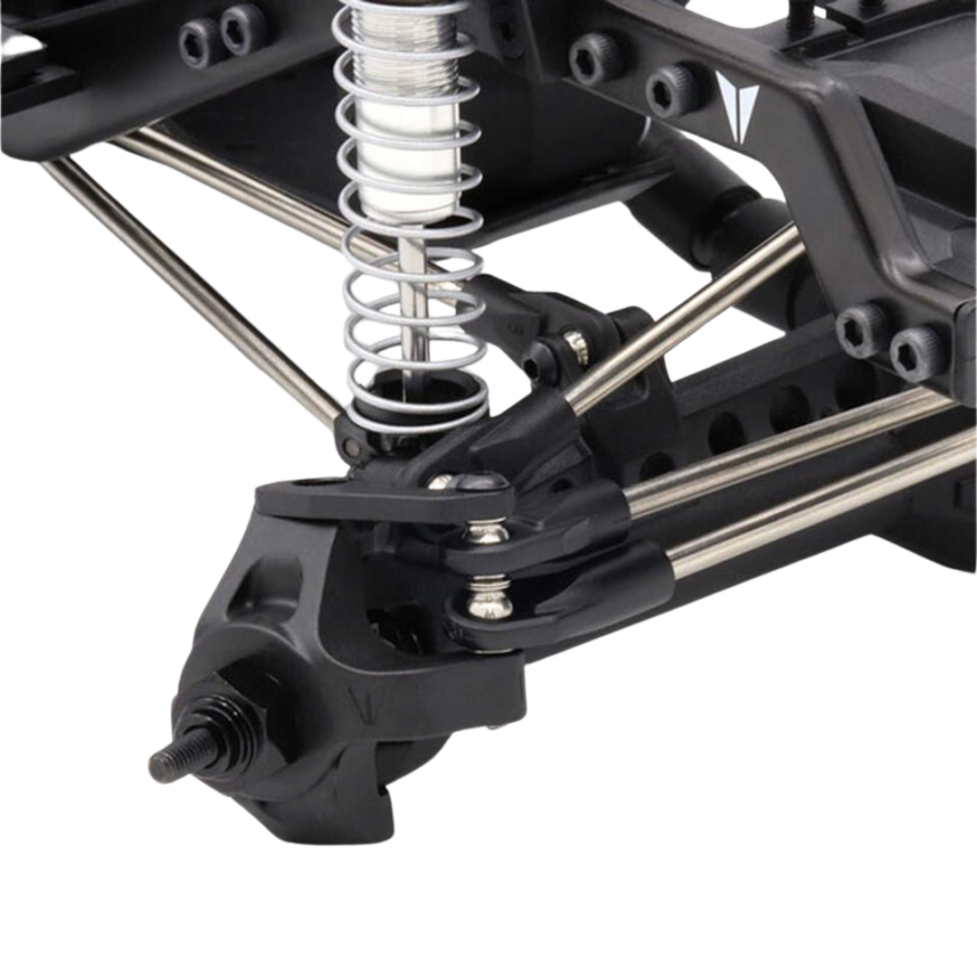 The VS4-10 chassis combines scale looks with high performance. The steel C-channel design provides immaculate detail and exceptional strength. This chassis features dual servo mounts, winch line routing, and a Panhard mount that is constructed from machined aluminum that is built to withstand unexpected trail impacts. The suspension system includes Incision 90mm S8E shocks with 8mm bore aluminum threaded bodies and stainless steel links, providing both durability and adjustability. This setup allows builders to fine-tune their vehicle's performance, ensuring it can tackle even the most challenging terrains with ease.