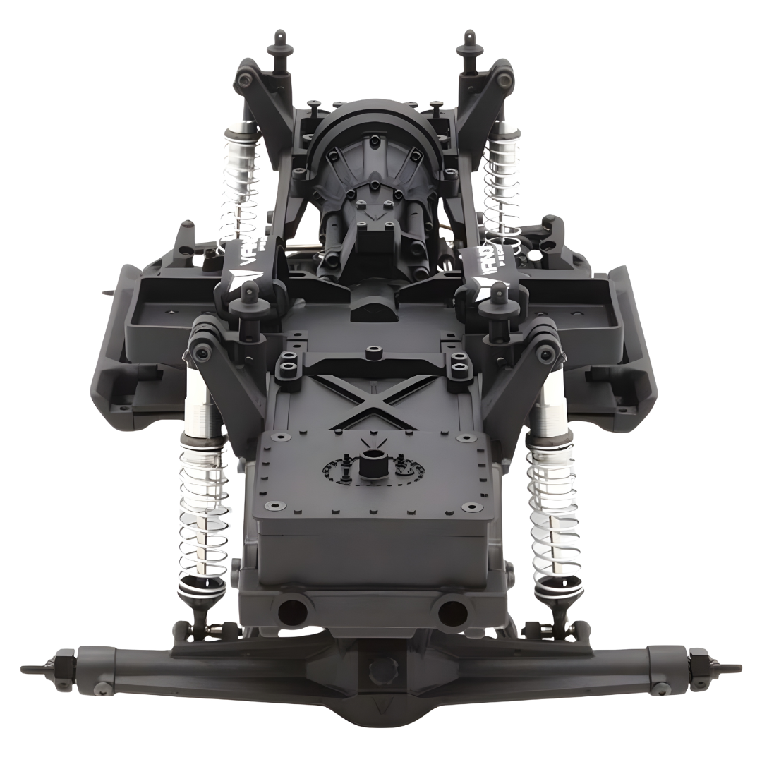 At the heart of the VS4-10 Builders Kit is the VFD transmission, renowned for its versatility and proven performance. This transmission offers a low and forward motor position, enhancing weight distribution for improved handling and climbing ability. With a 6.5% overdrive, it optimizes turning and climbing without stressing the electronics, making it a robust and reliable choice for any terrain.