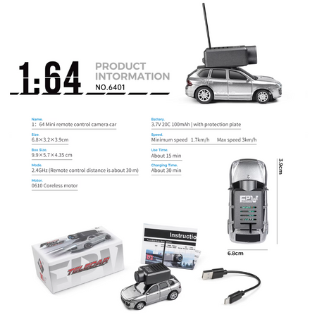 WL 1/64 Mini Porsche RC Car with Camera APP Control Diecast Grey 6401