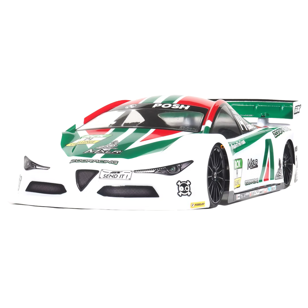 The ZooRacing ANTI is a high-performance 190mm touring car body developed for maximum downforce and enhanced rear stability. Designed with insights from the successful Wolverine, it delivers smoother handling and improved high-speed performance, making it ideal for both modified and stock class racing.